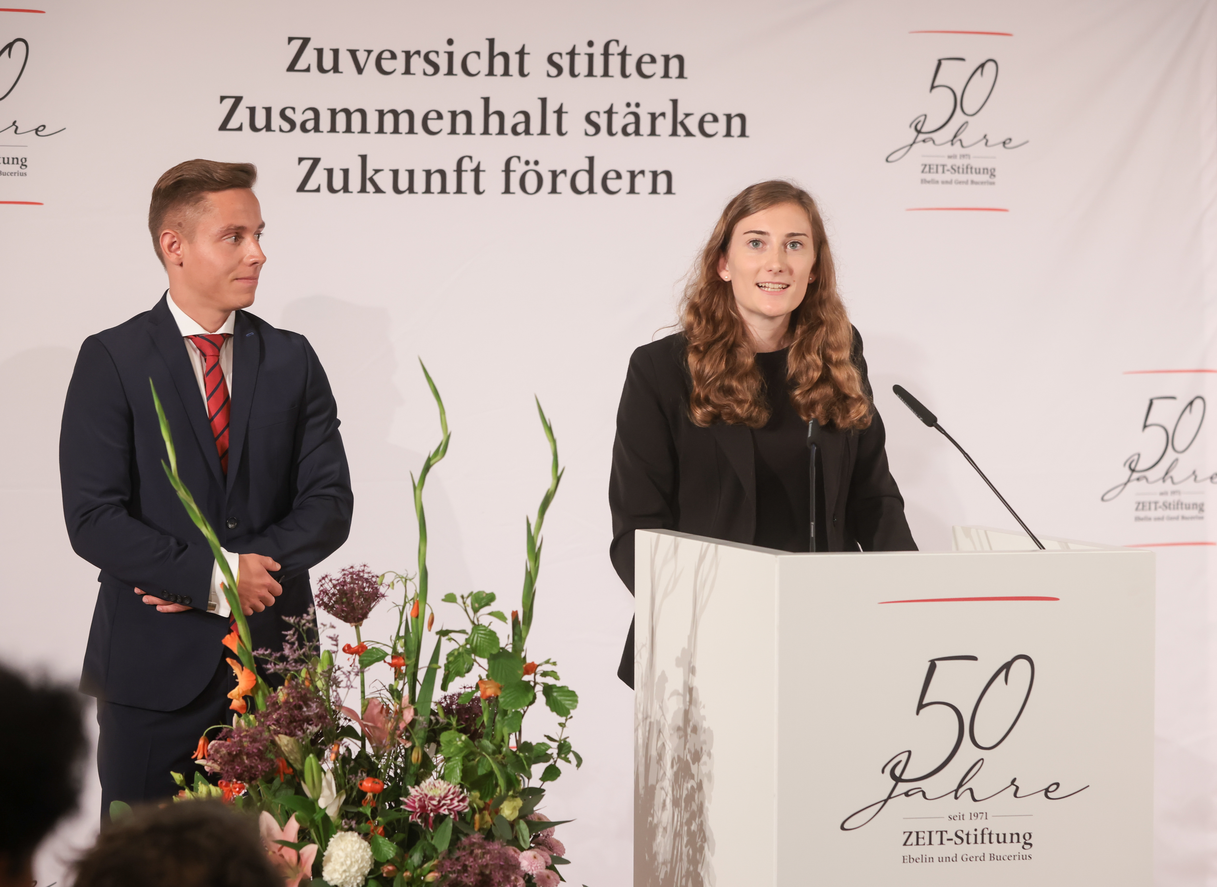 Ein Geschenk in ihrem Sinne, das sich die Stiftung zum 50. Geburtstag selbst gemacht hatte: Studierende der Bucerius Law School waren Teil einer Auswahlkommission und konnten fünf Projekte auswählen, die aus einem extra eingerichteten Jubiläumsfonds gefördert wurden. „Wir waren von der Idee von Anfang begeistert, als Studierende nicht nur die Stiftungsarbeit besser kennenzulernen, sondern auch Impulse für die zukünftige Stiftungsarbeit setzen zu können“, freute sich die Nachwuchsjuristin Sarah Heidner, die Teil des Auswahlkomitees war und die Initiativen auf der Bühne vorstellte.