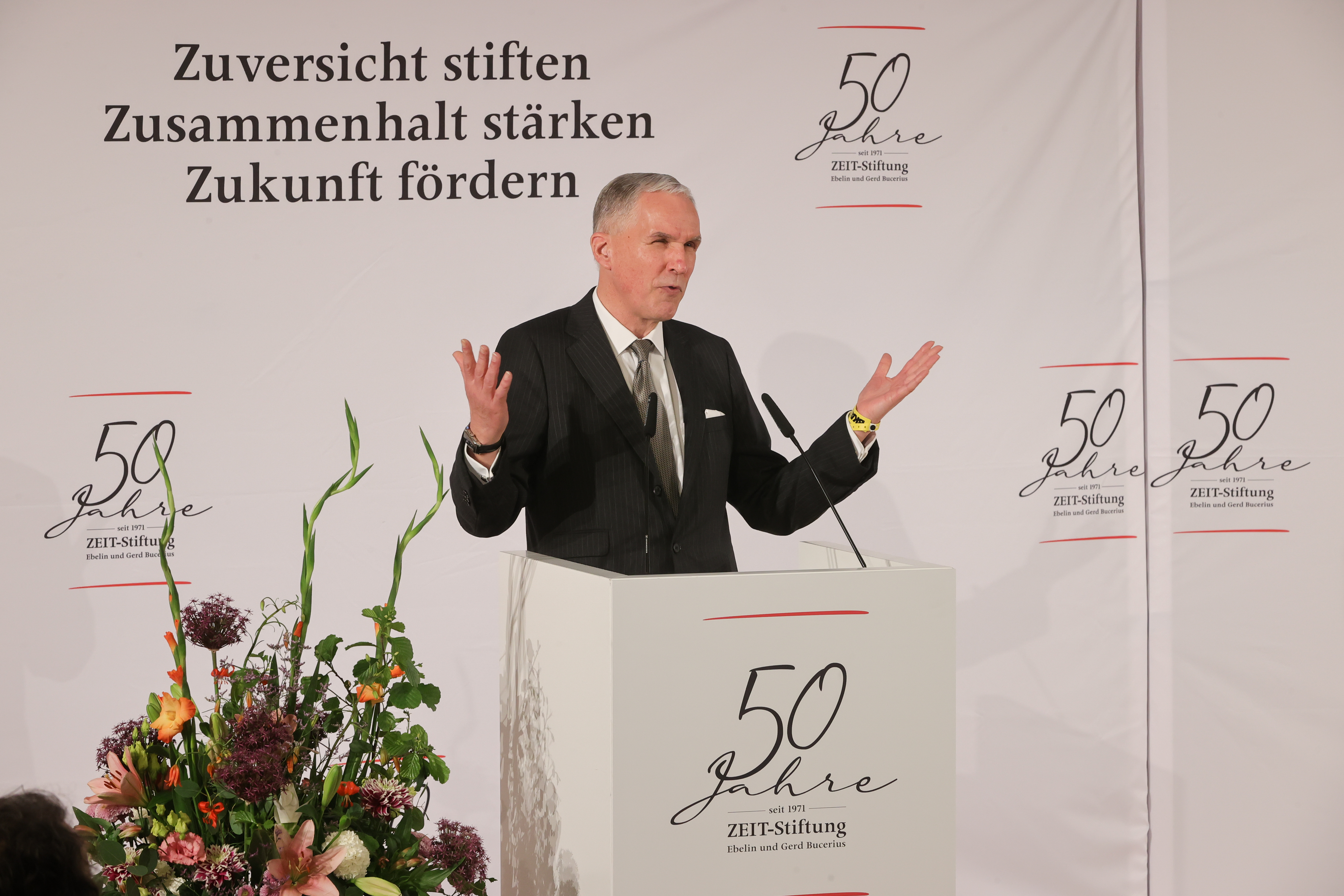 Der Ukraine-Krieg führe alle an ihre Grenzen, fordere heraus, individuell, wirtschaftlich und geopolitisch. „Darum werden wir heute keinen typischen Geburtstag feiern, keinen feierlichen Blick zurückwerfen“, erklärte Schwenker. Im Gegenteil: Man wage den „Blick nach vorn, auf der ernsthaften Suche danach, was wir tun können und wie wir uns am besten aufstellen.“ Drei Elemente, die aus seiner Sicht für die Arbeit der ZEIT STIFTUNG BUCERIUS zentral seien: In Szenarien denken, „klare Kante“ zeigen und die Freiheit aktiv verteidigen.