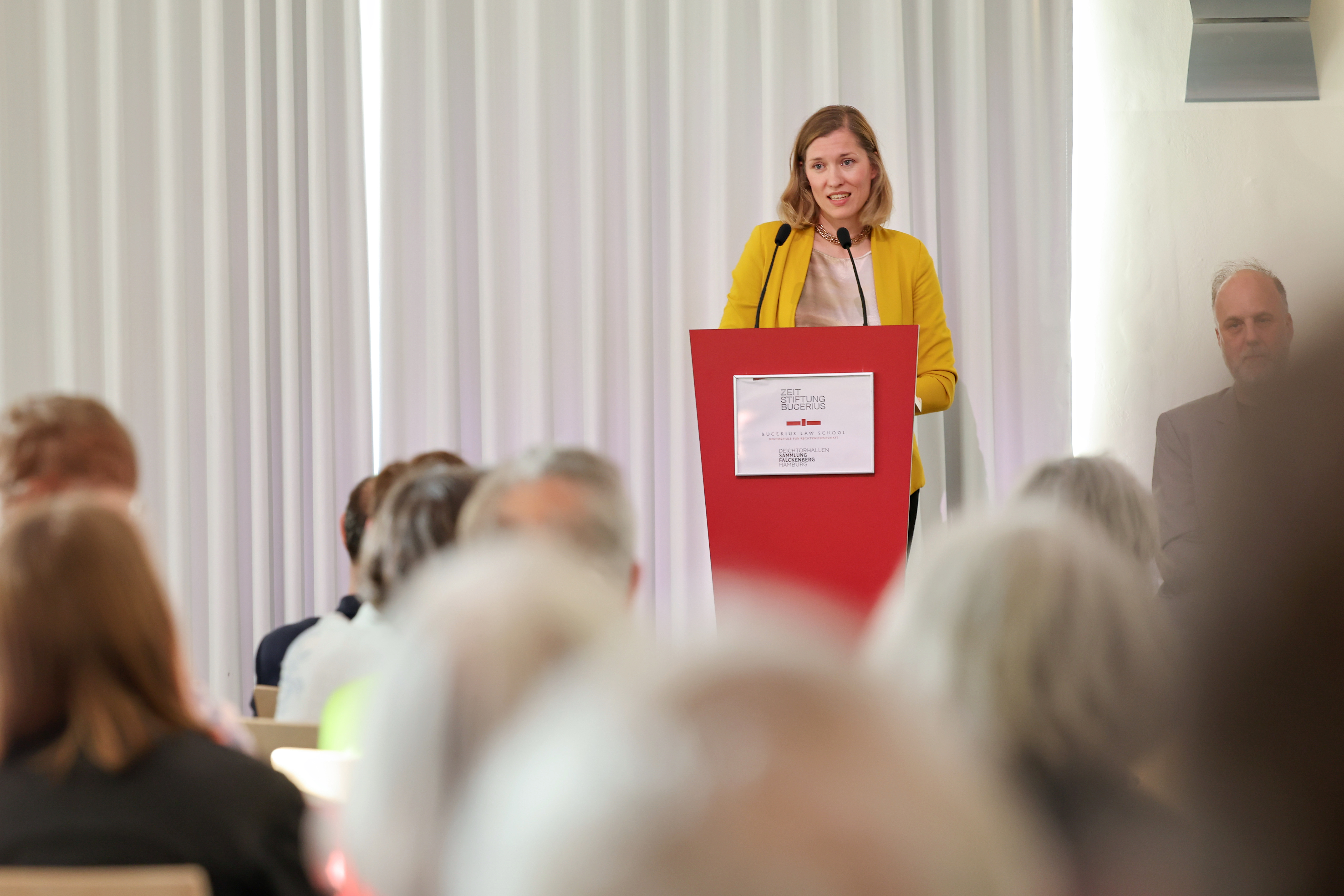 Harald Falckenberg ist im November 2023 im Alter von 80 Jahren verstorben. Statt seiner sitzt auf der Bühne nun seine Witwe, die Amerikanistin und Lektorin Dr. Larissa Falckenberg. Sie teilt das Podium mit Moderator Schlüter, der Berliner Galeristin Hackert und Prof. Dr. Dirk Luckow, Intendant der Deichtorhallen Hamburg, dem Kooperationspartner unserer gemeinsamen Seminar- und Veranstaltungsreihe mit dem Studium generale der Bucerius Law School. Die Deichtorhallen beherbergen seit 13 Jahren auch die Sammlung Falckenberg. In deren imposanten Ausstellungsräumen in Hamburg-Harburg werden die von Harald Falckenberg angeschafften und kuratierten Arbeiten sowie wechselnde Ausstellungen gezeigt. Weit vor der Eröffnung dieser Hallen hatte Falckenberg als gelernter Jurist jedoch ganz andere Positionen inne und war unter anderem als Verfassungsrichter aktiv. An diesem Abend geht es deshalb um die seltene Art und Weise, wie Harald Falckenberg Kunst und Recht zu vereint haben scheint – besonders auch in seiner Leidenschaft für Tiefgründigkeit und Genauigkeit. Im Schreiben von Texten und Hängen von Bildern sei Falckenberg gleichermaßen auf Präzision bedacht gewesen, erinnert sich Larissa Falckenberg: „Es ging um Millimeter“.