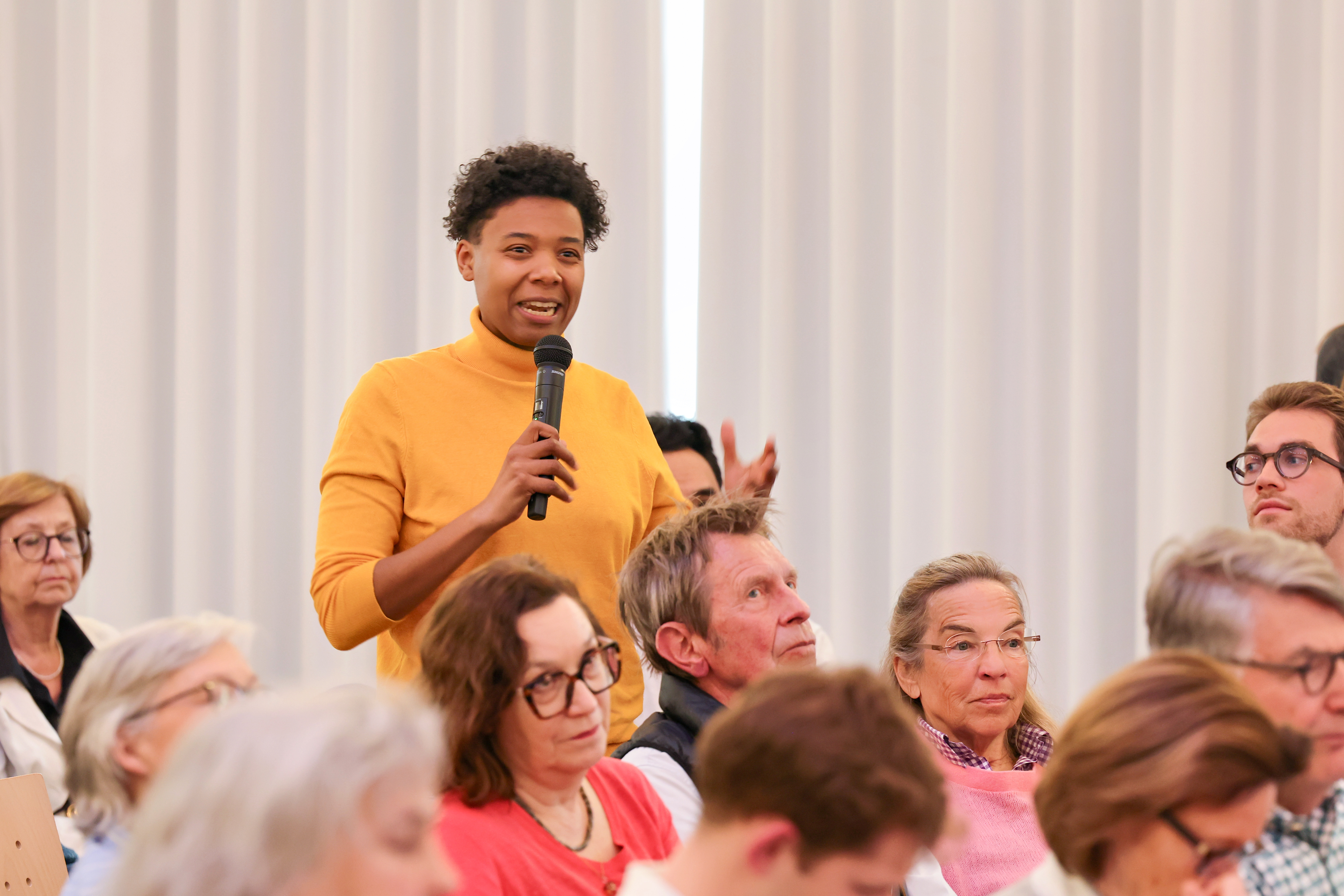 Dass Harald Falckenbergs Leben und Werk viele Anknüpfpunkte für Diskussionen über Kunst, Recht und Gesellschaft bieten, ist am Ende des Abends Publikum wie Panel klar. Die Zuschauer:innen interessieren im Nachgang aber noch viel größere Themen, über die Falckenberg vermutlich auch selbst gern diskutiert hätte: Es geht um Fragen und Grenzen zur Einschränkung der Kunstfreiheit, um Investitionen, um Zukunftsperspektiven und um das Verhältnis von Kunst zu Künstlicher Intelligenz – letzteres diskutieren wir übrigens in unserer weiteren Veranstaltungsreihe „Was macht KI mit…?“ am 16. Mai in Hamburg.