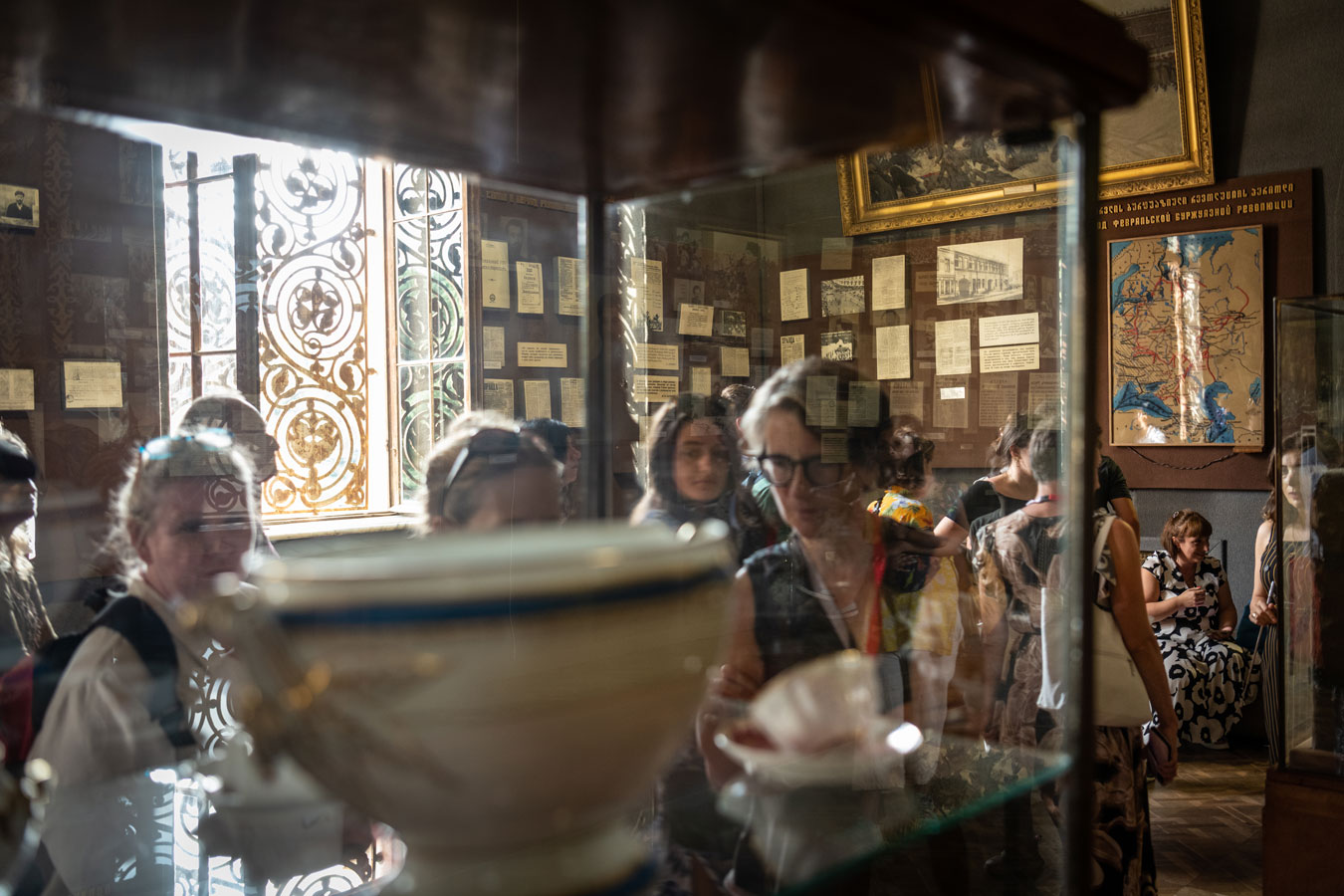 Bei einer Exkursion in die Umgebung der georgischen Hauptstadt standen der Besuch der Felsen- und Höhlenstadt Uplitsikhe und des Josef-Stalin-Museums in Gori auf dem Programm. Historiker David Jishkariani begleitete unsere Gruppe und ergänzte zahlreiche Hintergrundinformationen über das ambivalente Verhältnis der georgischen Gesellschaft zu Stalin, das zwischen der Verehrung als mächtiger und berühmter „Sohn“ der Nation und der Ablehnung als Symbol für die sowjetischen Herrschaft über das Land schwankt.