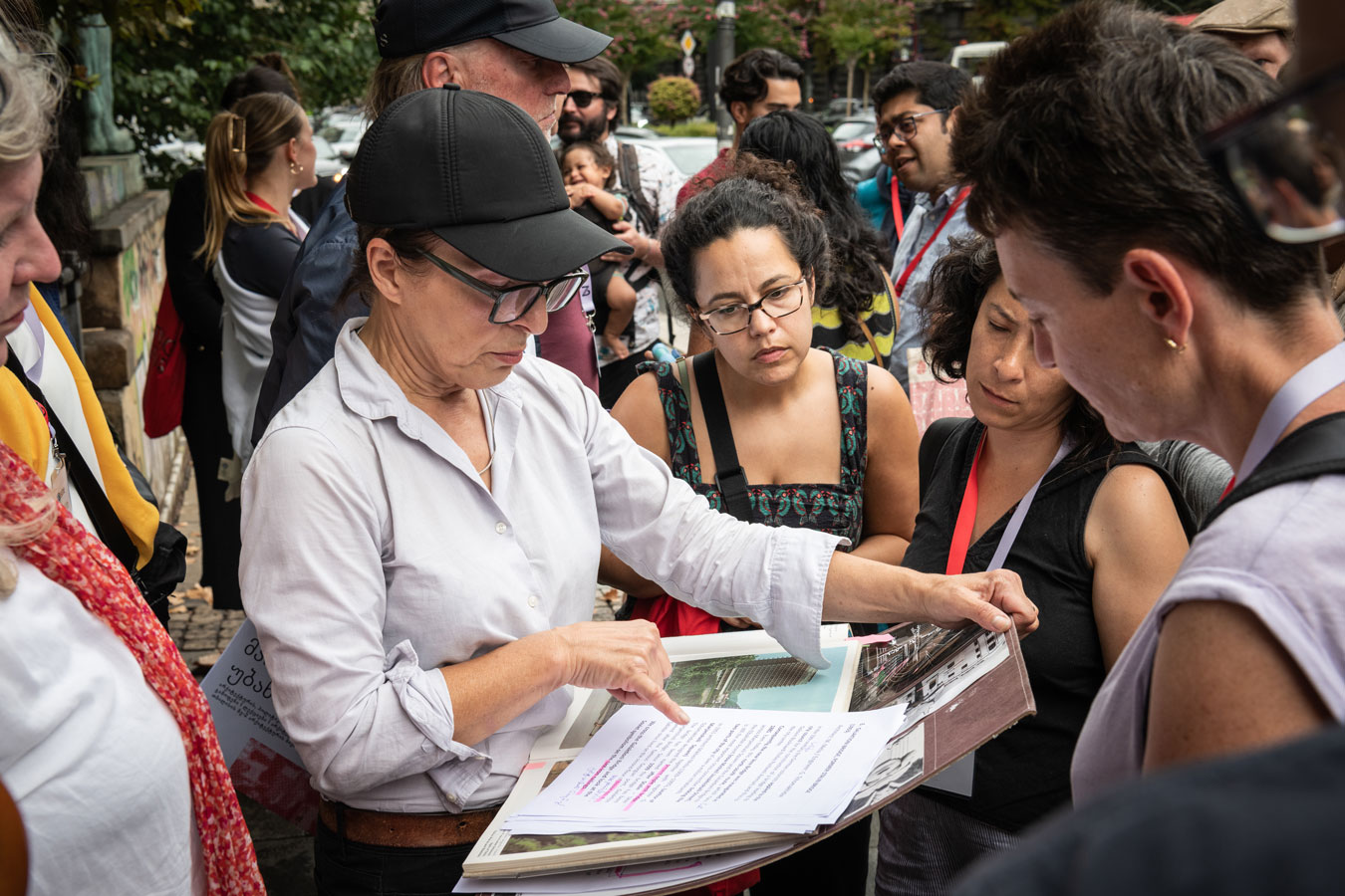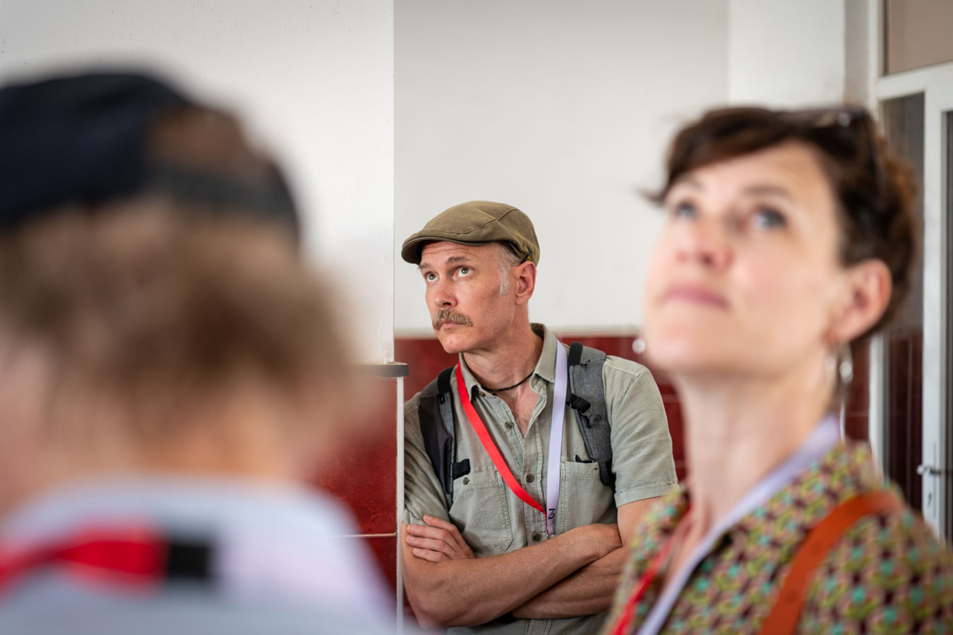 Rundgänge und Exkursionen bereicherten das Programm: Der Spaziergang mit der Architekturkuratorin Irina Kurtishvili führte durch das Marjanischwili-Viertel und offenbarte trotz Regen die architektonischen Schätze und die reiche Geschichte des Viertels. Die Marjanischwili-Straße ist eine der wichtigsten Verbindungen im städtischen System von Tbilissi. Sie liegt am linken Ufer des Flusses Mtkvari und war im 19. Jahrhundert das Zentrum der deutschen Kolonie mit der 1895 eingeweihten evangelisch-lutherischen Kirche „Peter und Paul“, die nach dem Zweiten Weltkrieg von deutschen Kriegsgefangenen abgerissen wurde.