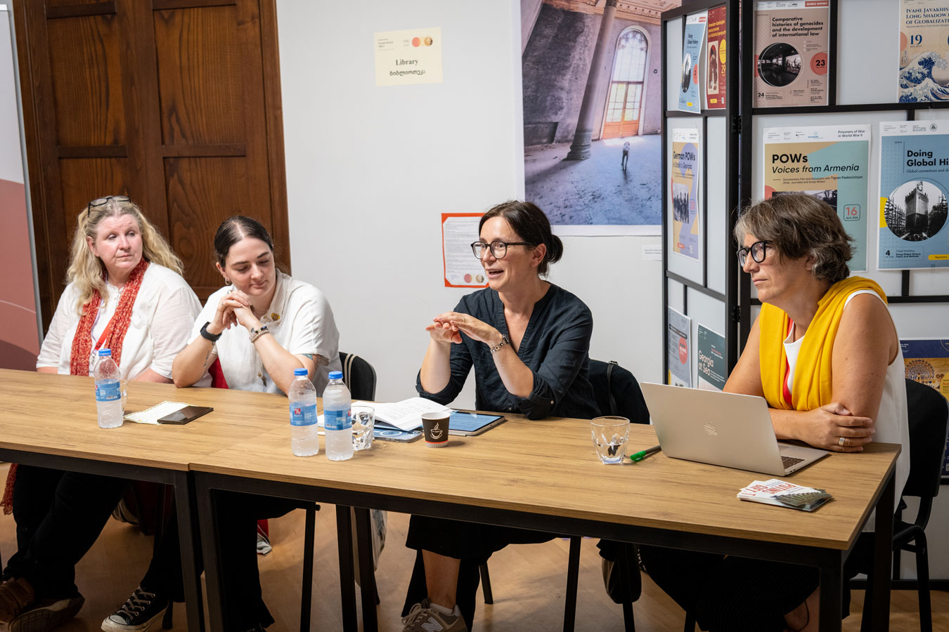 Im Fokus der Gespräche in den Räumen des Auslandsbüro Georgien der Max-Weber-Stiftung standen aktuelle politische und gesellschaftliche Entwicklungen. Die Journalistinnen Mariam Nikuradze (OC Media), Preisträgerin 2023 unseres „Free Media Awards“, und Gesine Dornblüth (Deutschlandfunk) gaben im Rahmen einer Podiumsdiskussion zahlreiche Einblicke in die geopolitische und regionale Lage Georgiens. Am Beispiel des umstrittenen „Gesetzes zur Transparenz ausländischer Einflussnahme“ erläuterten sie, mit welchen neuen Einschränkungen unabhängige Medien in Georgien derzeit konfrontiert sind. Einblicke in die tägliche Arbeit georgischer Journalist:innen lieferte außerdem der Austausch mit Manana Kveliashvili, die als Digitaljournalistin in Batumi arbeitet.