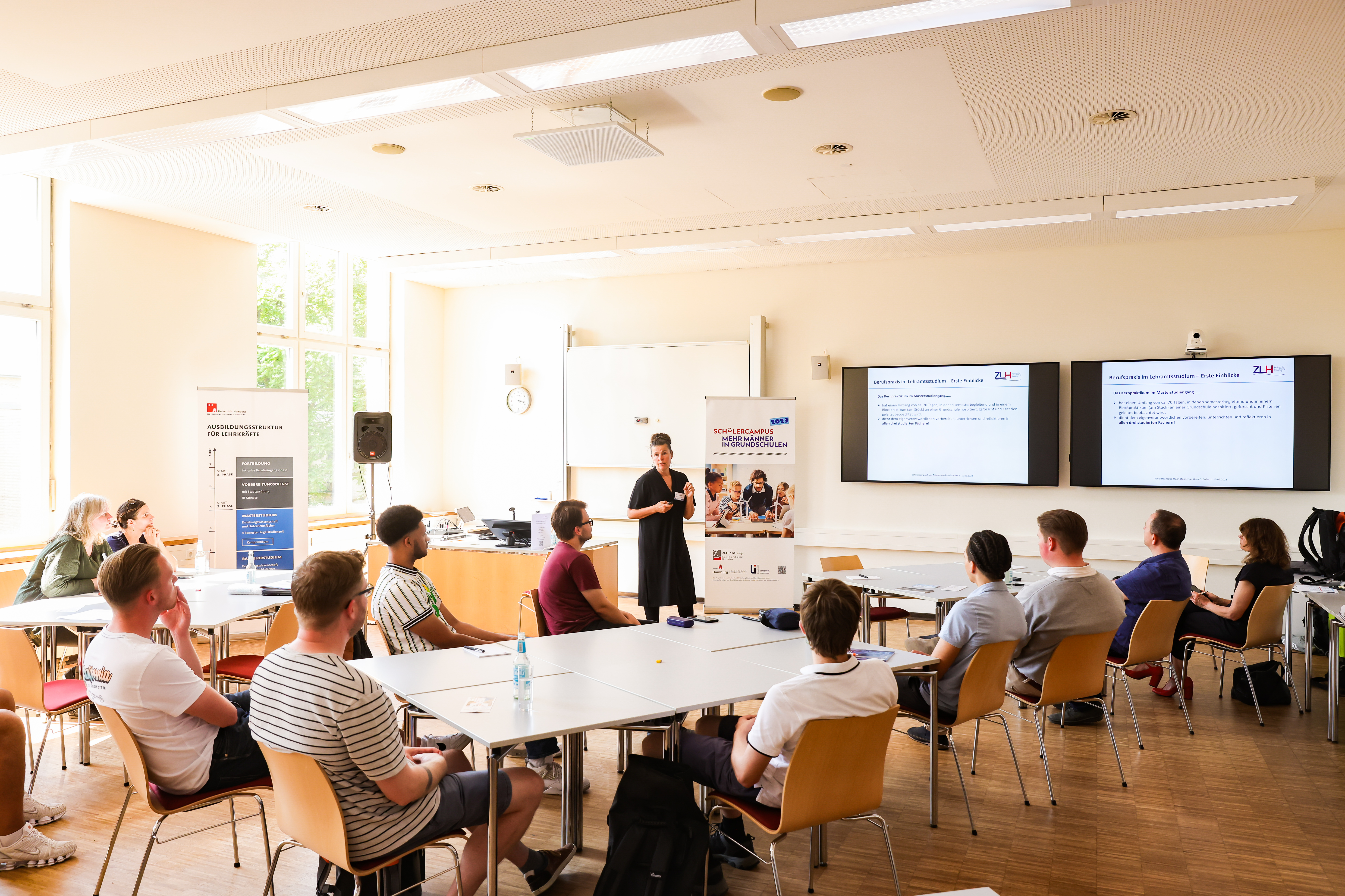 Am Nachmittag folgt mehr Austausch in Kleingruppen und weitere Einblicke aus der Praxis – zum Beispiel von Lehrern im Vorbereitungsdienst (Referendariat), von Carola Heffenmenger, Leiterin des Zentrums für Lehrerbildung Hamburg, oder von Prof. Dr. Michael Tunç aus dem Department Soziale Arbeit der HAW Hamburg. In interaktiven Gruppenarbeiten sprechen die Teilnehmer mit Lehrern und den Expert:innen auch darüber, was einen „guten Grundschullehrer“ ausmacht und wie nächste Schritte auf dem Weg zum Studium und Beruf aussehen könnten. Und während das individuelle Entscheidungen für jeden Neugierigen sind, bleiben die nächsten Schritte im Projekt „Mehr Männer in Grundschulen“ ganz klar: Auf diesen Schülercampus werden – neben weiteren Projektinitiativen – noch weitere folgen, um eine nachhaltige Wertschätzung und Motivation zu schaffen, das spannende Grundschullehramt neu zu gestalten – unter allen Geschlechtern.