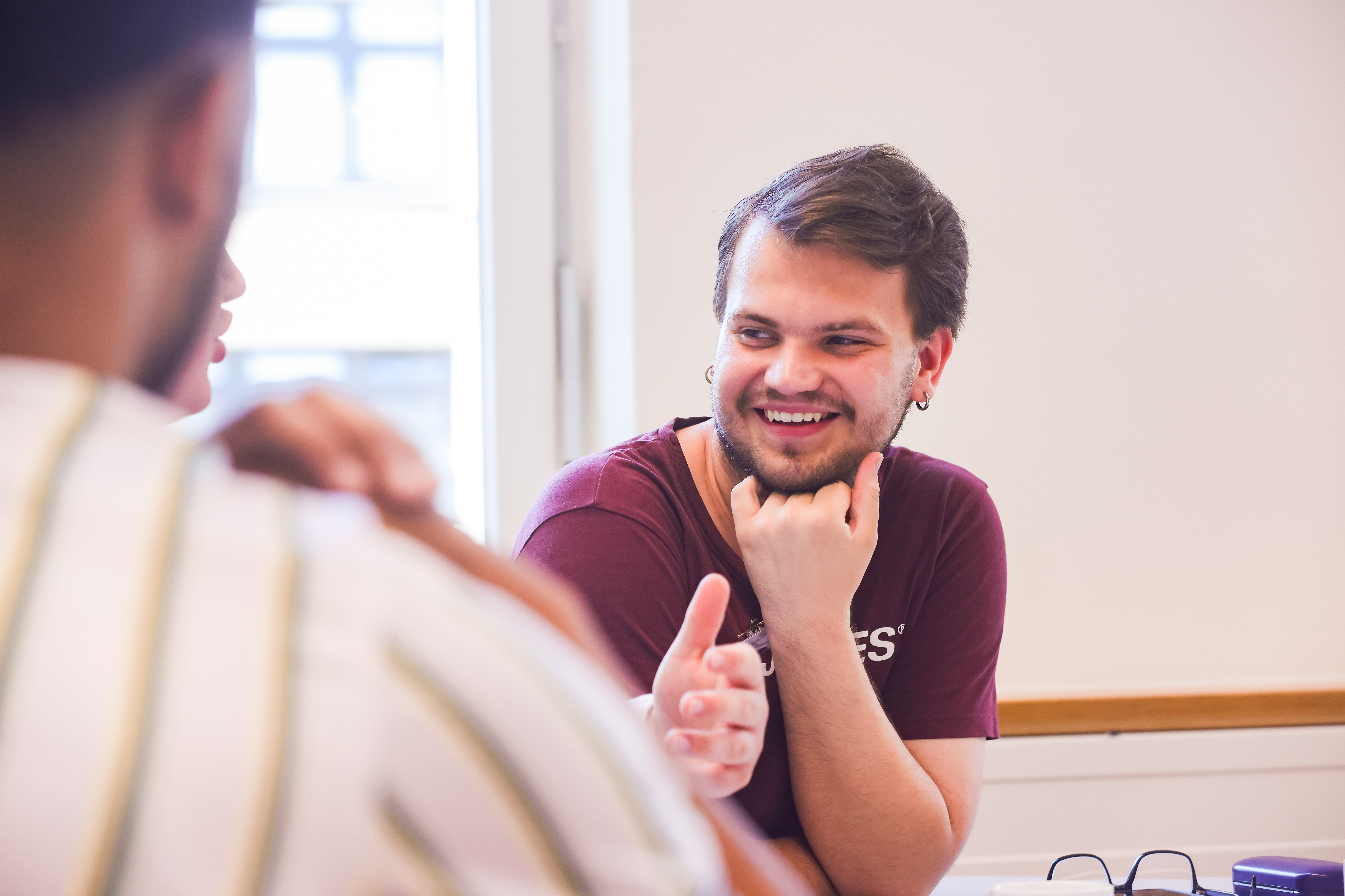 Gleich zu Beginn ihrer Info-Präsentationen kommt von Seiten der Schüler aber eine viel grundlegendere Frage: „Welchen Numerus Clausus brauche ich, um Grundschullehramt zu studieren?“, will Abiturient Ibrahim wissen. Der NC für Grundschullehramt liegt aktuell bei ca. 2,0 – Interessierte sollten aber in jedem Fall versuchen, einen Studienplatz zu erhalten, lautet eine Antwort. Ibrahim beschäftigt sich schon länger damit, wohin ihn sein Weg nach dem Abitur führen wird. „Bisher interessiere ich mich für Sozialpädagogik, Lehramt ist neu dazugestoßen“, erzählt er. „Ich wollte heute einfach mal wissen: Liegt mir das? Mache ich lieber Grundschule oder Sekundärstufe?“ Die theoretischen Infos beim Schülercampus haben Ibrahim jedenfalls schon dabei geholfen, neugierig auf die Arbeit in der Grundschule zu werden – beim Campus hat er sich direkt mit Grundschullehrer Can-Yavuz Yörenc vernetzt und ein mögliches Praktikum vereinbart. Yörenc berichtet den Schülern am Vormittag aus erster Hand vom Alltag in der Grundschule – und welche komplexen, spannenden und wichtigen Aufgaben damit auf sie warten könnten. Das Besondere am Beruf sei, dass man zwar an einen Lehrplan gebunden ist, aber auch viele Freiheiten habe, um zu Beispiel – wie Yörenc selbst – weitere Aufgaben zu übernehmen, zum Beispiel als interkultureller Koordinator. Das Schönste aber sei für ihn, im Leben der Kinder „früh mitwirken“ und wie bei „Knetmasse“ mitformen zu können, erzählt Yörenc. Auch darin sieht Schüler Ibrahim für sich Chancen: „Ich habe halt eine Migrationsgeschichte und ich denke, ich kann Kindern von klein an viel mehr mit auf den Weg geben. Wenn sie groß sind, haben sie die Problematik des „Andersseins“ schon ein wenig aufgearbeitet. Für die kleineren Geflüchteten und Migranten bin ich dann der bessere Ansprechpartner und sie können sich vielleicht besser mit mir identifizieren.“