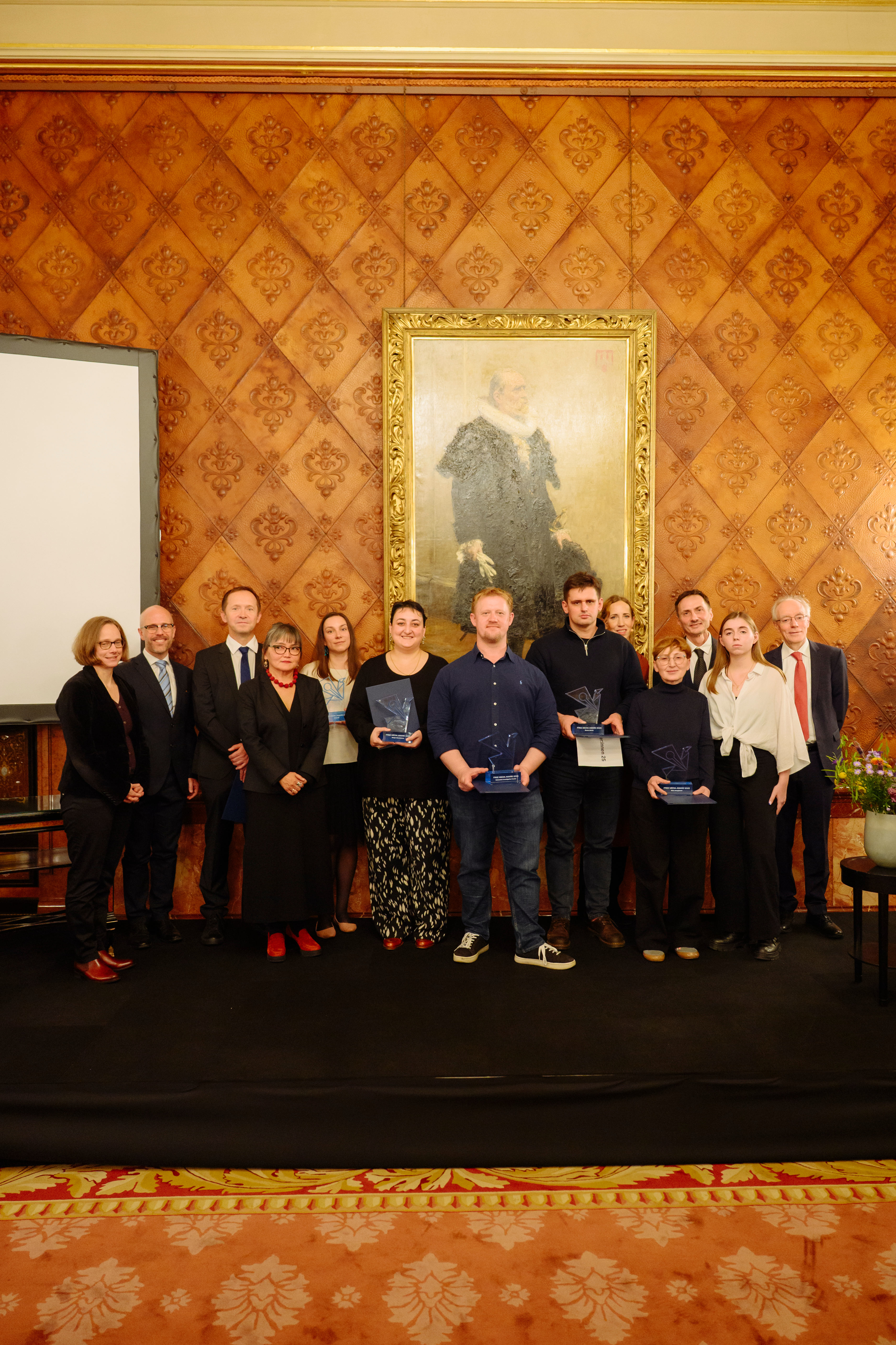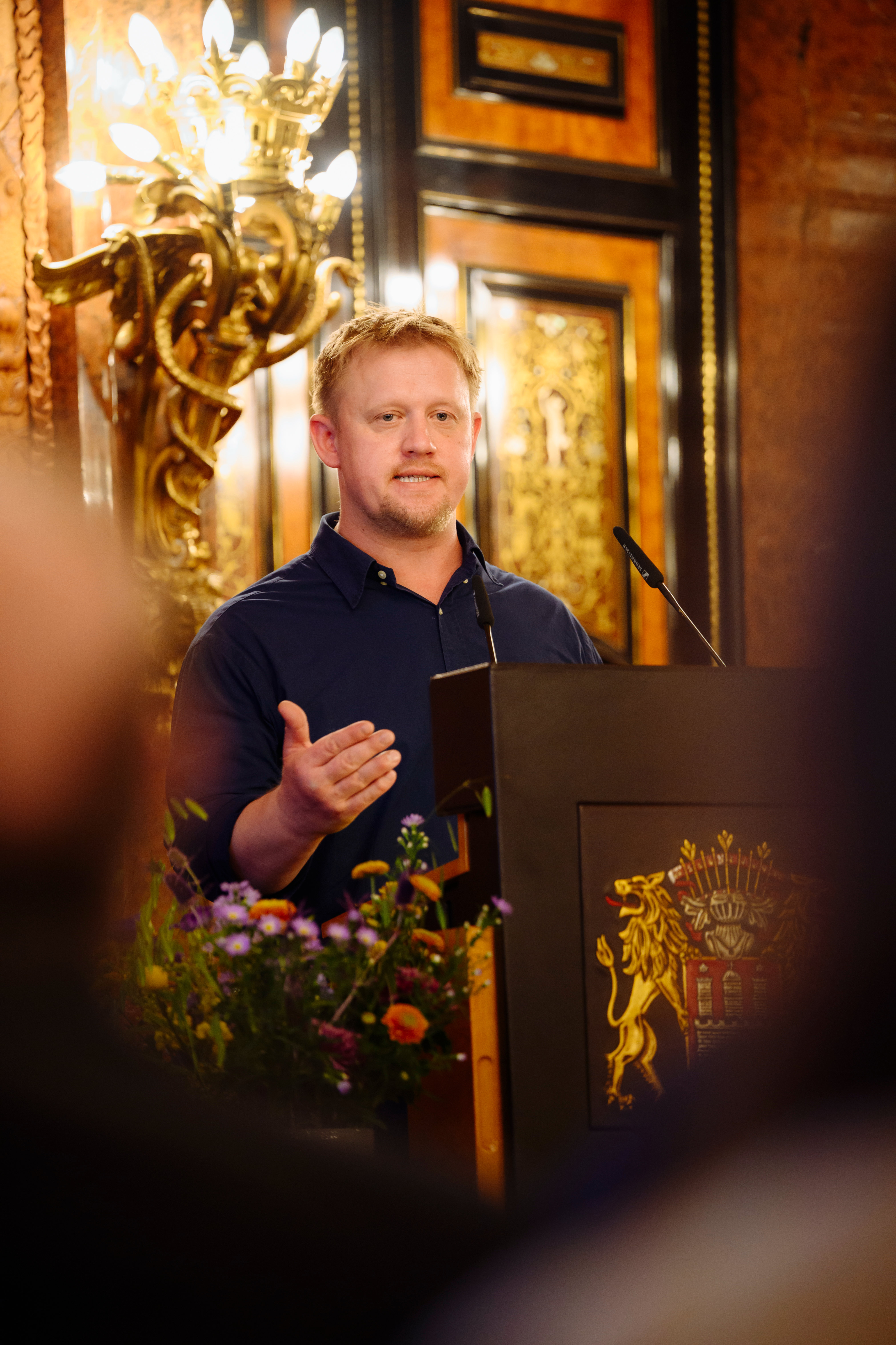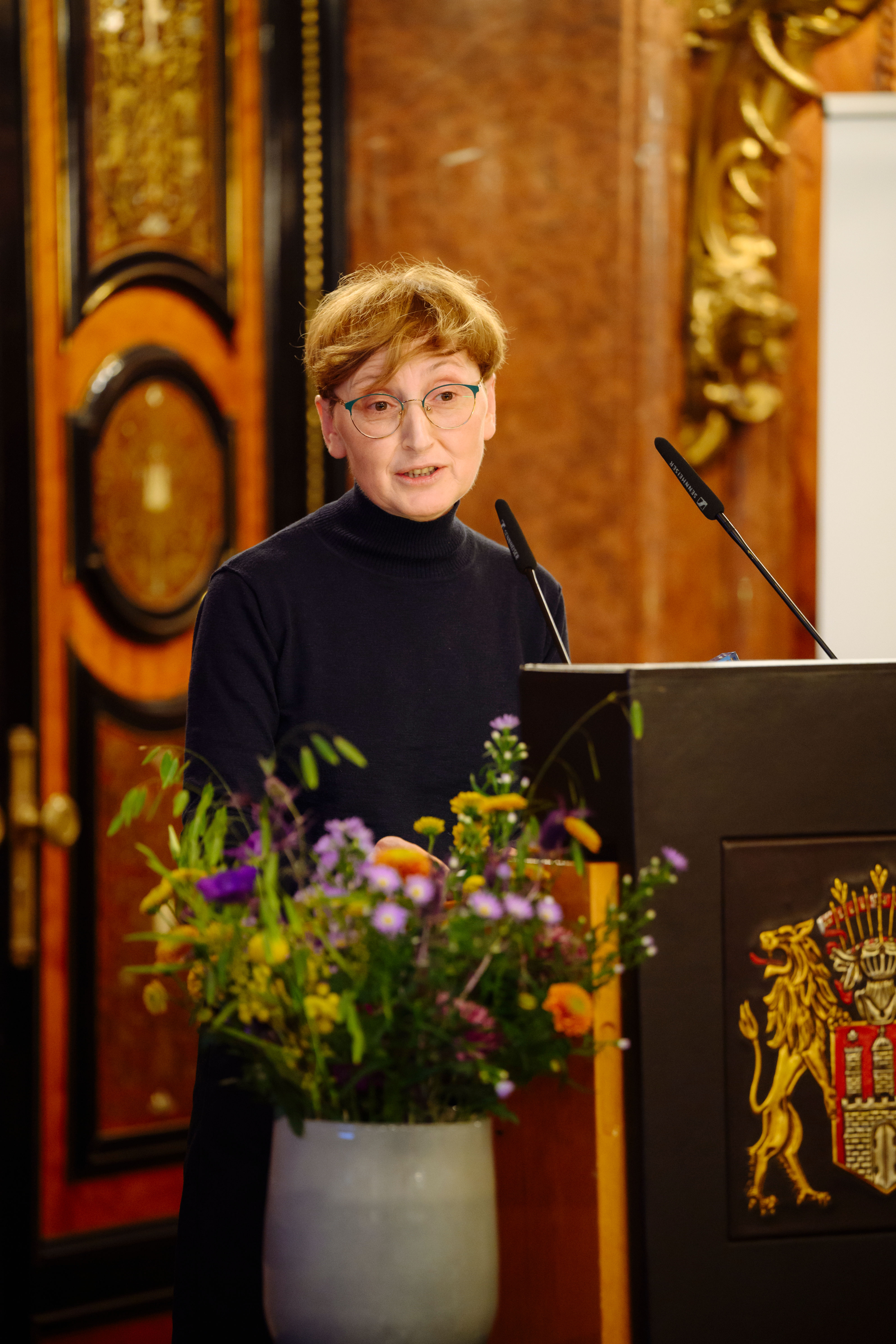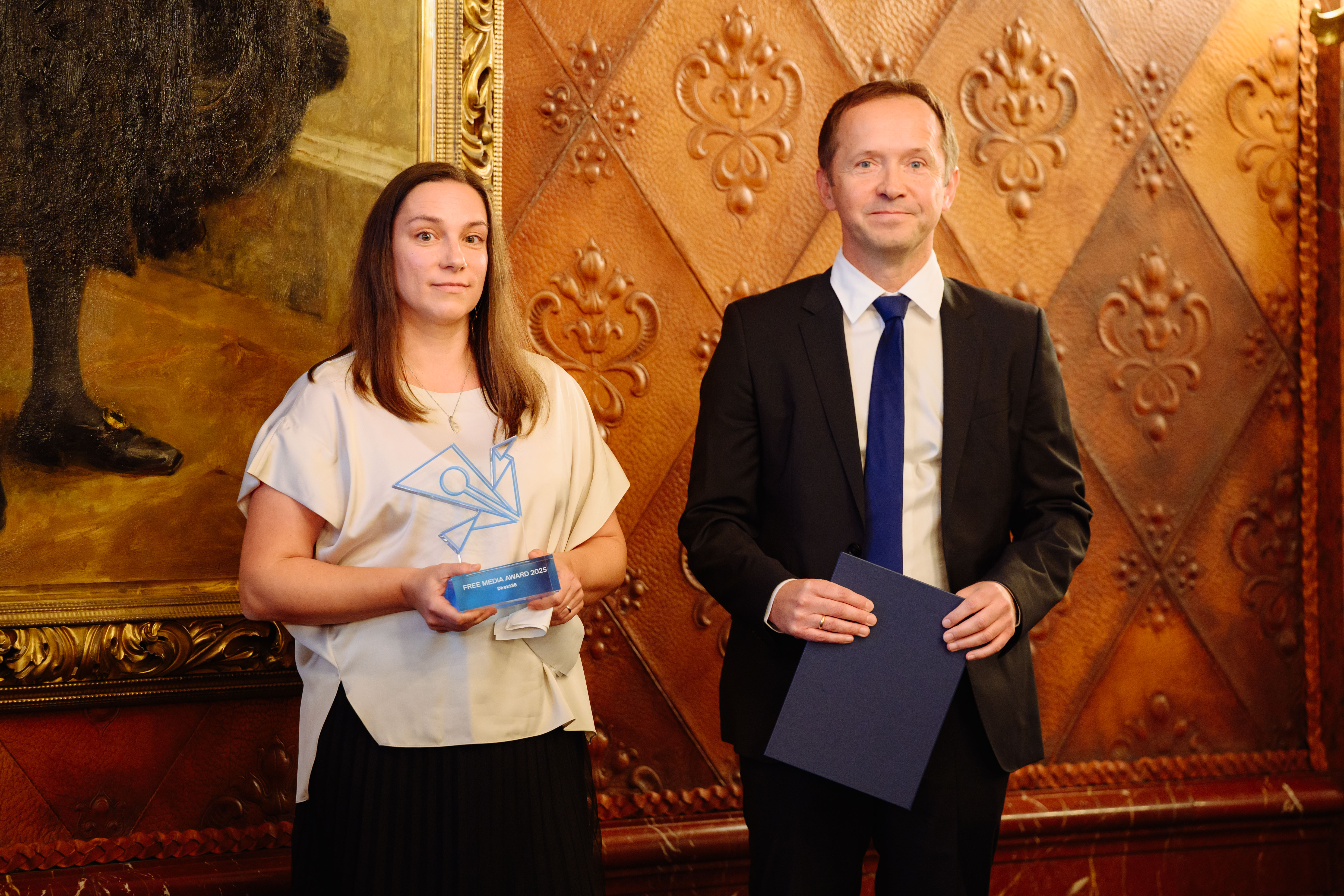 Während sich die untergehende Sonne noch in den hohen Fenstern des Hamburger Rathauses spiegelt, kommen sie im eindrucksvollen Kaisersaal zusammen: Die Preisträger:innen der Free Media Awards 2025. Sie selbst oder ihre Vertreter:innen sind aus Aserbaidschan, der Ukraine, Georgien, Ungarn, Belarus und Russland angereist, um an diesem Abend den Preis für unabhängige Berichterstattung in Osteuropa und Russland entgegenzunehmen, verliehen von uns als ZEIT STIFTUNG BUCERIUS und der norwegischen Stiftung Fritt Ord. 2025 ehren wir damit die mutige Arbeit von Nargiz Absamalova (Aserbaidschan), Gwara Media (Ukraine), Mzia Amaglobeli (Georgien), Direkt36 (Ungarn), des Belarusian Investigative Center (Belarus) und von Alexandra Astakhova (Russland). Arbeit, die sie unter zum Teil lebensbedrohlichen Bedingungen ausführen, teils im Exil, unter starkem politischem Druck und der Beobachtung von repressiven Regimen. Zwei der Preisträger:innen, Absamalova und Amaglobeli, sind in Aserbaidschan und Georgien aktuell aufgrund ihrer Arbeit inhaftiert und können den Preis nicht persönlich entgegennehmen. Ihren Vertreter:innen und den weiteren Preistragenden hören an diesem Abend zahlreiche Gäste gebannt zu: andere Journalist:innen, Förder:innen und Interessierte sind im Kaisersaal zusammengekommen, um den Kampf für freie Berichterstattung zu ehren. Durch den Abend führt Alice Bota, Jurymitglied der Free Media Awards und Journalistin für DIE ZEIT, begleitet von Musiker Leonard Stanoschefsky am Kontrabass, Stipendiat der Gerd Bucerius-Stipendien der Deutschen Stiftung Musikleben.