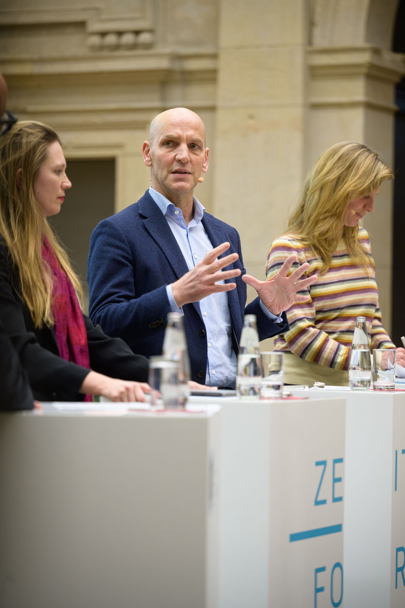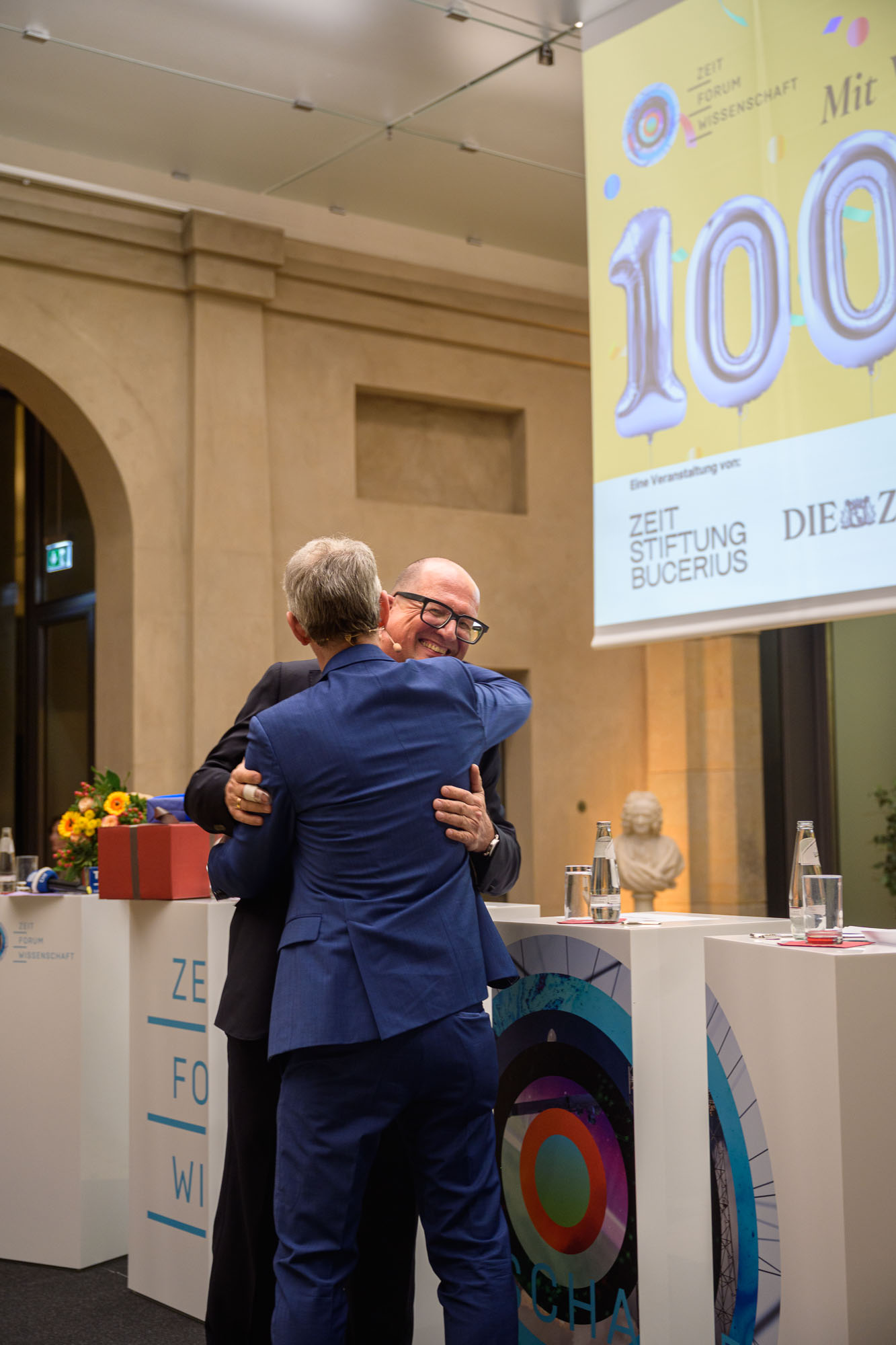 Mit diesem Geist der Veränderungen im Rücken erfährt auch das „ZEIT Forum Wissenschaft“ als Format einige Veränderungen, die Niels von der Kall, neuer CEO der ZEIT Verlagsgruppe, und Stefan Raue, Intendant des Deutschlandfunks, zum Abschluss des Abends vorstellten. So wird das „ZEIT Forum Wissenschaft“ weiterhin von der Berlin-Brandenburgischen Akademie der Wissenschaften begleitet, zieht mit der 101. Ausgabe aber an einen neuen Ort: das Humboldt-Forum. Dieser Raum erlaubt dem Format, sich noch dialogischer auszurichten und Partizipation des Publikums stärker in die Programmgestaltung einzubeziehen. Neu sein wird auch die Moderationskonstellation: Andreas Sentker verabschiedet sich aus der Live-Moderation des Formats und übergibt den Stab an seine ZEIT-Kolleginnen Anna-Lena Scholz und Sibylle Anderl, die in Zukunft gemeinsam mit Ralf Krauter und der ebenfalls dazustoßenden Katrin Kühn vom Deutschlandfunk, moderieren werden. Für den ZEIT-Wissen-Leiter Sentker bedeutete das Jubiläum nach rund 25 Jahren der Live-Moderation einen großen Abschied und bewegende Dankesworte, auch seitens der Partner:innen der ZEIT STIFTUNG BUCERIUS, der BBAW, des Deutschlandfunks und Holtzbrinck Berlins, die das Format seit der ersten Stunde operativ betreuen und durchführen. Die erste Ausgabe im Humboldt-Forum findet am 10. Juni 2026 statt, mehr dazu bald in unserem Veranstaltungskalender.