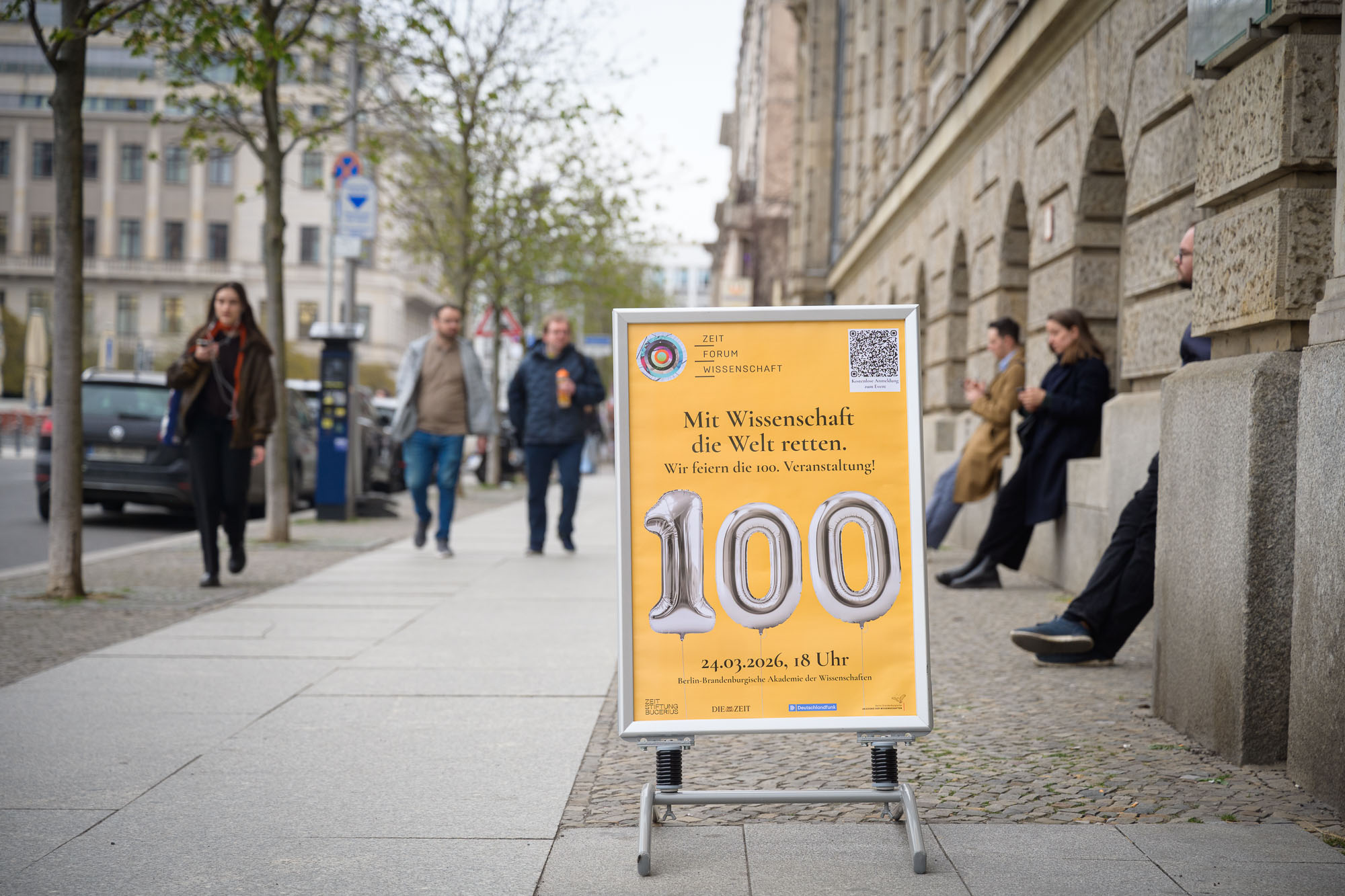 „Menschen mit guten Ideen“ zusammenbringen, „kluge Köpfe“ aus Wissenschaft, Politik, Wirtschaft und Gesellschaft vereinen – seit rund 25 Jahren bringt das „ZEIT Forum Wissenschaft“ spannende Persönlichkeiten mit großen Ideen zu jeder Ausgabe auf die große Bühne. In etwa so formulierten es die Moderatoren des Formats, Andreas Sentker, Geschäftsführender Redakteur und Leiter des Ressort Wissenschaft bei DIE ZEIT, und Ralf Krauter, Redakteur „Forschung aktuell“ beim Deutschlandfunk, zur Eröffnung der 100. Jubiläumsausgabe in der Berlin-Brandenburgischen Akademie der Wissenschaften. Zur großen Geburtstagsfeier begrüßte das Duo unter dem Motto „Mit Wissenschaft die Welt retten“ den Nobelpreisträger und Chemiker Benjamin List, die Wissenschaftlerin, Autorin, Rednerin und Autorin Maja Göpel sowie Dr. Kira Vink, Leiterin des Zentrums für Klima und Außenpolitik der Deutschen Gesellschaft für Auswärtige Politik, auf dem Podium. Dem hybriden Charakter des Formats getreu stellten anschließend drei Start-ups ihre Ideen und Lösungsansätze für wissenschaftliche Probleme vor – von Medizin bis Recycling.