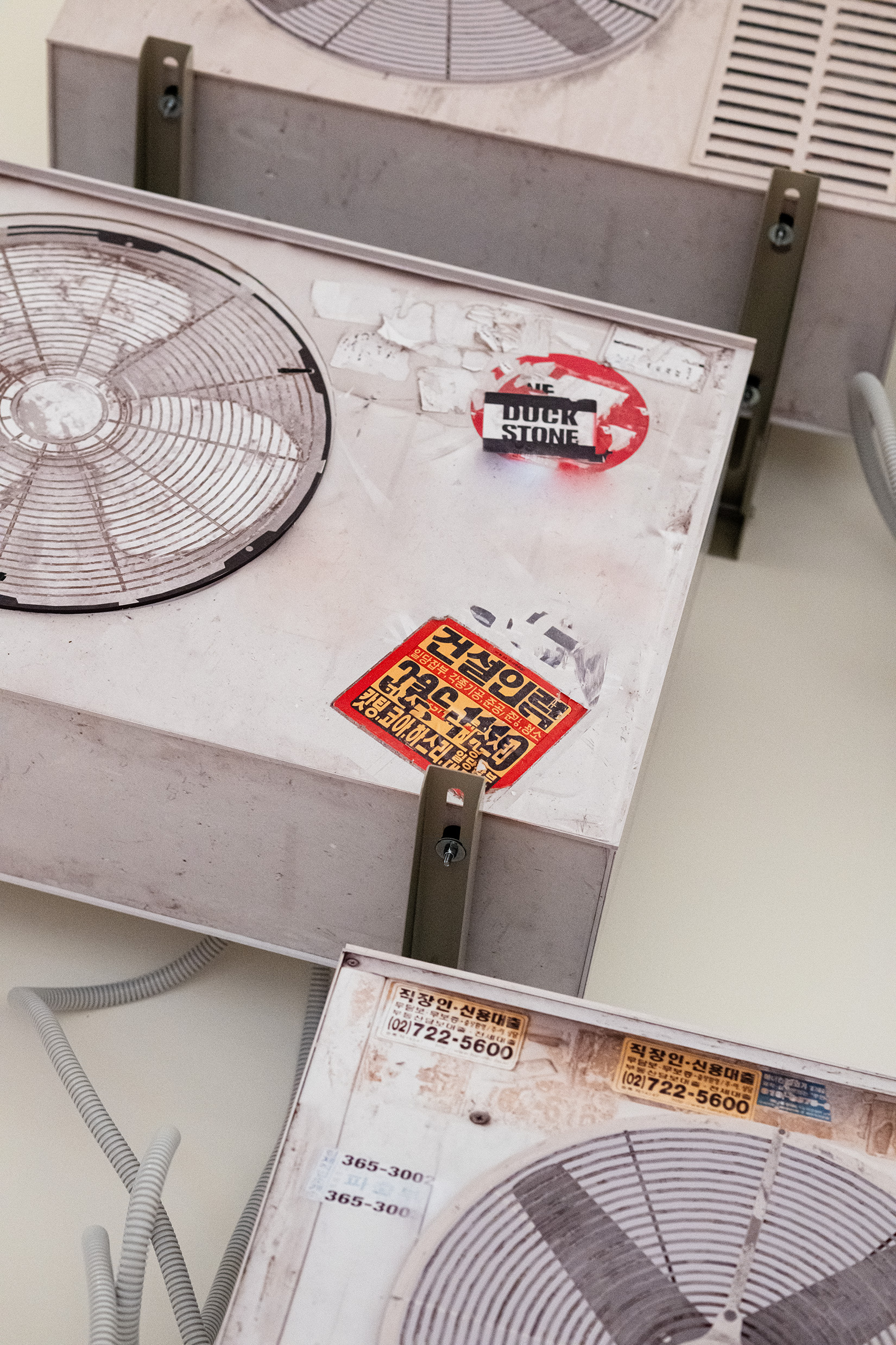 Ein Treppenhaus ist ein besonderer „Off-Ort“. Anders als Flure erfordert es mehr Aufmerksamkeit. Gleichzeitig bietet es durch die Bewältigung jeder Stufe neue Perspektiven und bietet daher immer etwas an. Da die Klimaanlagen wie eine Architektur-Ergänzung funktionieren sollen, sind sie mit der Treppe verwandt. Das Treppenhaus funktioniert im Verhältnis zu meiner Arbeit zudem wie ein Komplize, da die Treppe es ermöglicht, die künstliche Version der Technik von verschiedenen Blickwinkeln aus zu begutachten und sich selbst zu ihr in unterschiedlichen Weisen zu positionieren.