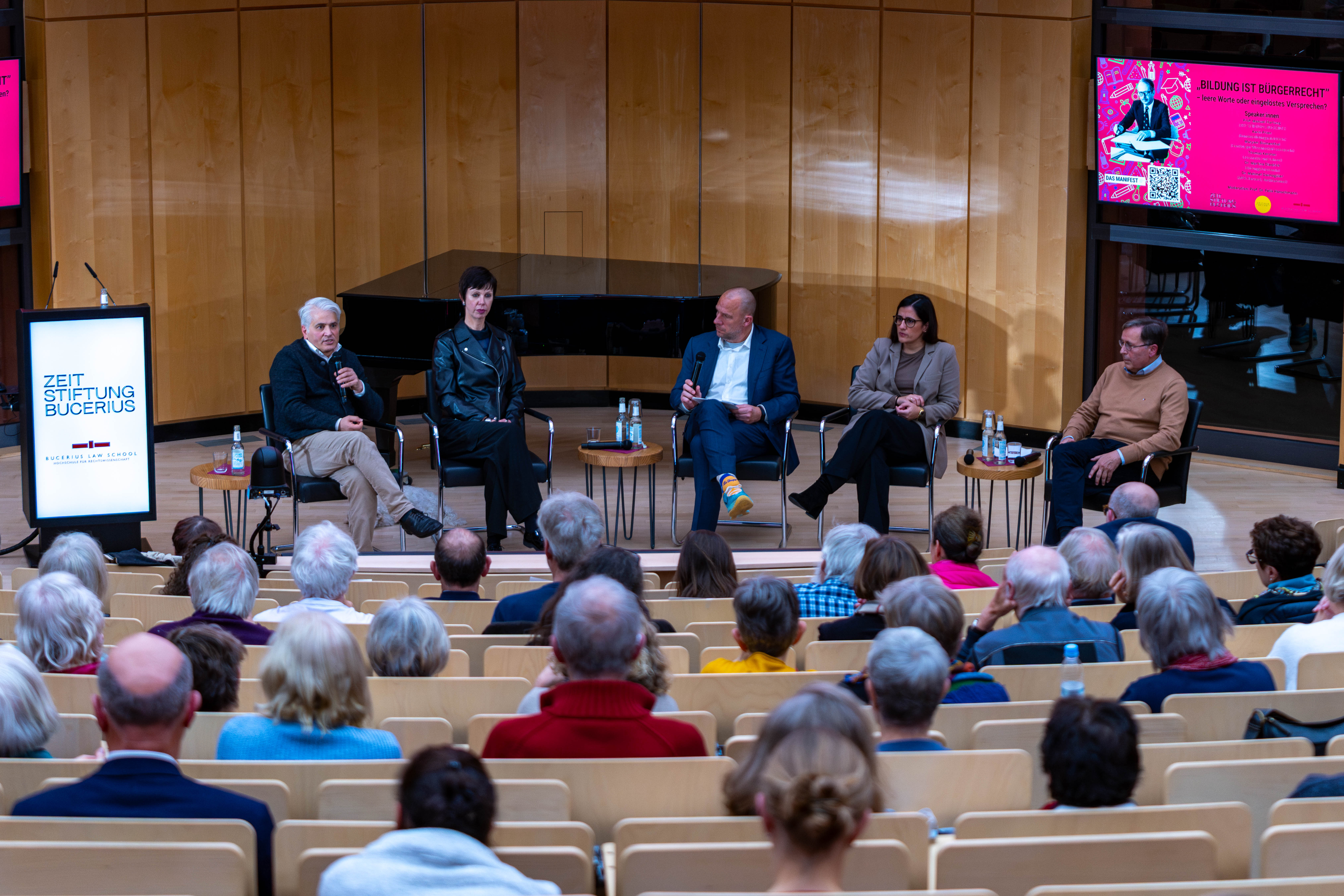 Eine im Herbst 2022 gebildete, interdisziplinär besetzte, offene Expert:innengruppe hat aus Dahrendorfs Vision konkrete Ziele und Handlungsempfehlungen entwickelt. Seither fanden zahlreiche Veranstaltungen und öffentliche Debatten statt, etwa zur Qualitätssicherung, Diskriminierung und Rassismus an Schulen. Die Beteiligten aus Recht, Bildungsforschung, Bildungsgeschichte und Zivilgesellschaft haben zudem mit Bildungspolitiker:innen und Praktiker:innen gesprochen und empirische Forschungsergebnisse betrachtet. Ihre Erkenntnisse sind in ein „Manifest zum Bürgerrecht auf Bildung“ eingeflossen, das im Januar 2024 der damaligen Bundesbildungsministerin Lisa Paus übergeben wurde. Nun wurde am 12. November 2025 – exakt 60 Jahre, nachdem der erste Teil von Dahrendorfs wegweisendem Buch „Bildung ist Bürgerrecht. Plädoyer für eine aktive Bildungspolitik“ in der ZEIT erschien – in der Bucerius Law School kritisch Bilanz gezogen. Die Veranstaltung unter dem Titel „Bildung ist Bürgerrecht. Leere Worte oder eingelöstes Versprechen?“ bildete einen starken Schlussakkord nach drei Jahren intensiver Diskussionen, Konzeptentwicklung und politischem Dialog.