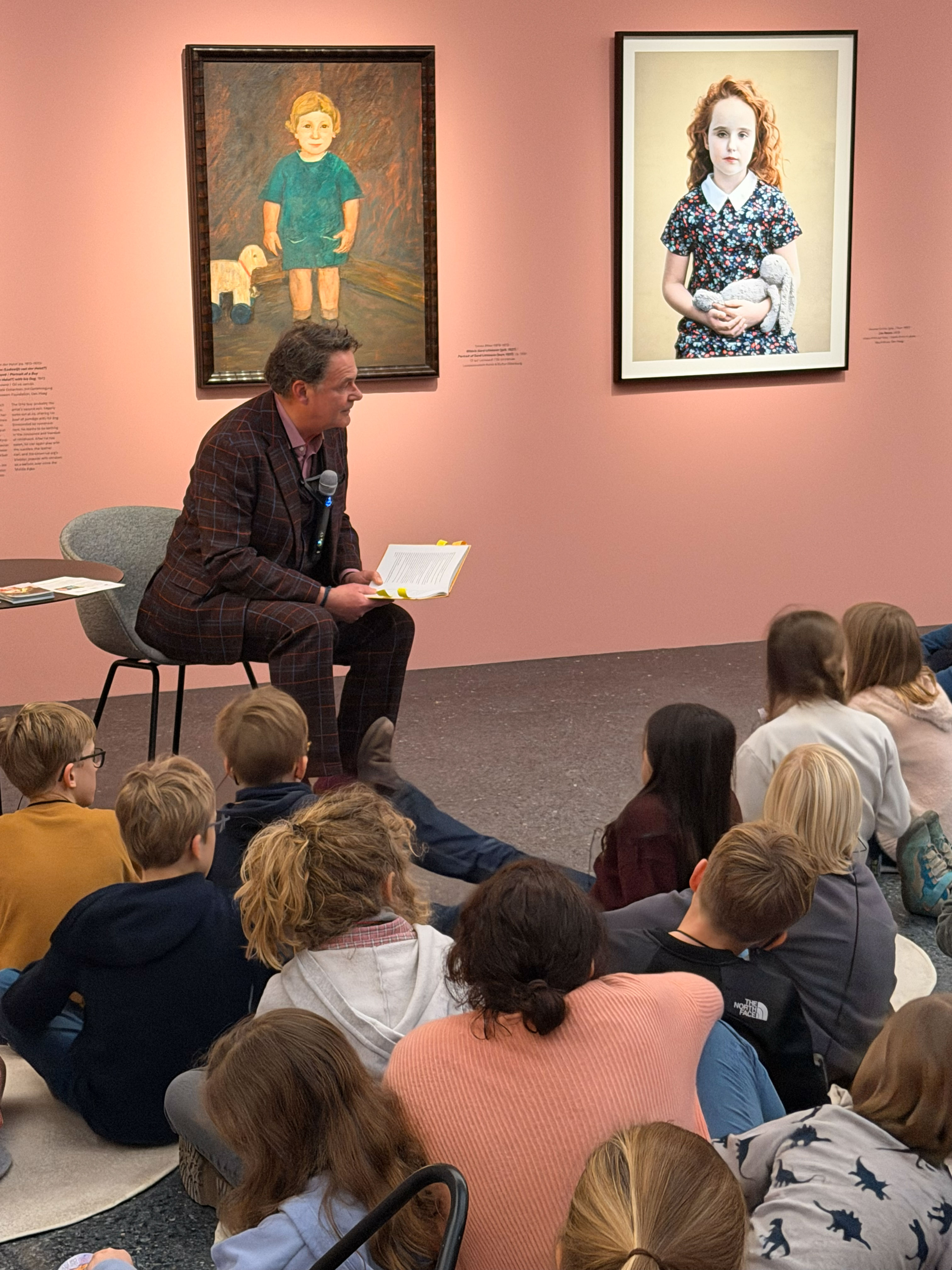 Kinder unter (Kunst-)Kindern: Ende Januar 2026 bot sich ein besonderes Bild im Bucerius Kunst Forum: Zwischen den künstlerischen Darstellungen junger Menschen, die in der Ausstellung „Kinder, Kinder!“ zu sehen sind, lauschten rund 50 quicklebendige Kinder, am Boden auf Kissen sitzend, gebannt den Geschichten und Gedanken von Erwachsenen. Doch nicht das ausgestellte Werk stand im Mittelpunkt, sondern die Geschichten der Vortragenden: Kinderbücher von Tina Blase, Nils Mohl, Franziska Biermann und Kai Pannen.